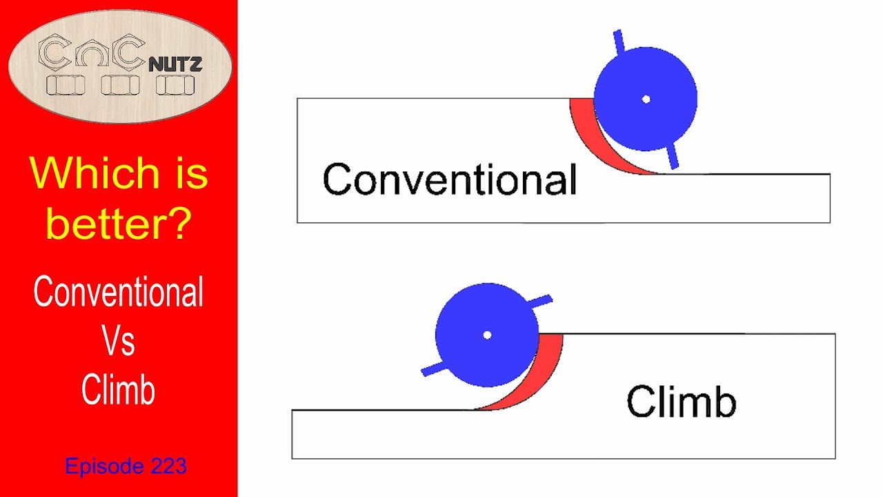 But IF it wasn’t paused here another possibility is that if the cnc is over at the left side during the photo: one possibility is that as the cut changes from left to right (climb milling) and then it moves left to right (conventional milling) the bit pulls itself into the material during conventional milling… this pulling is amplified even more as the Y also pulls it upwards and the bit engages with even more material and pulls the gantry into a bit more material until and stretches the belts… this is why easel runs the default (offset) in climb all of the time, because climb is more forgiving to a less rigid CNC machine… Here’s some info about climb vs conventional cutting to better visualize what this can do to the gantry and the bit under each process…