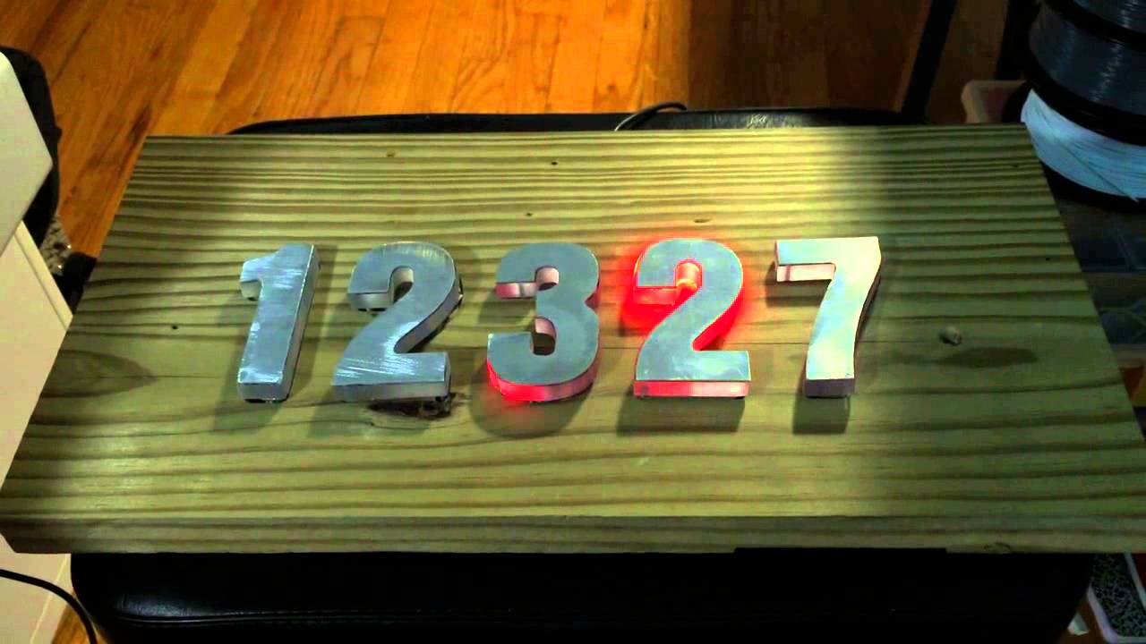 Milled out from a scrap piece of wood that was used to repair our deck and used that to replace our old, boring house number. It’s controlled by SmartThings and powered by a spark core. It has about 30+ visual animations and about 22 sound effects. Everything Super Mario effects, Zelda, Final Fantasy and the bonus fail effect from the price is right. And of course “Never Gonna Give You Up”. All triggered by a motion sensor near the front door. The nice thing about teaming this up with SmartThings, I can do ‘controlled’ events. i.e. when I come home. The garage door opens, the door unlocks and the sign plays the theme song to ‘Air Wolf’ (Loved that show)
