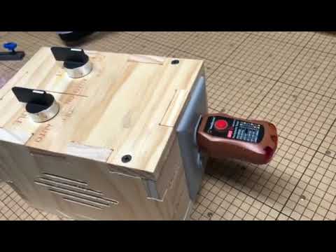 I made the box out of 1/2" pine using the box maker app in Easel. I made cutouts for the cable grips, the control switches, the fan, outlet, and some ventilation holes.