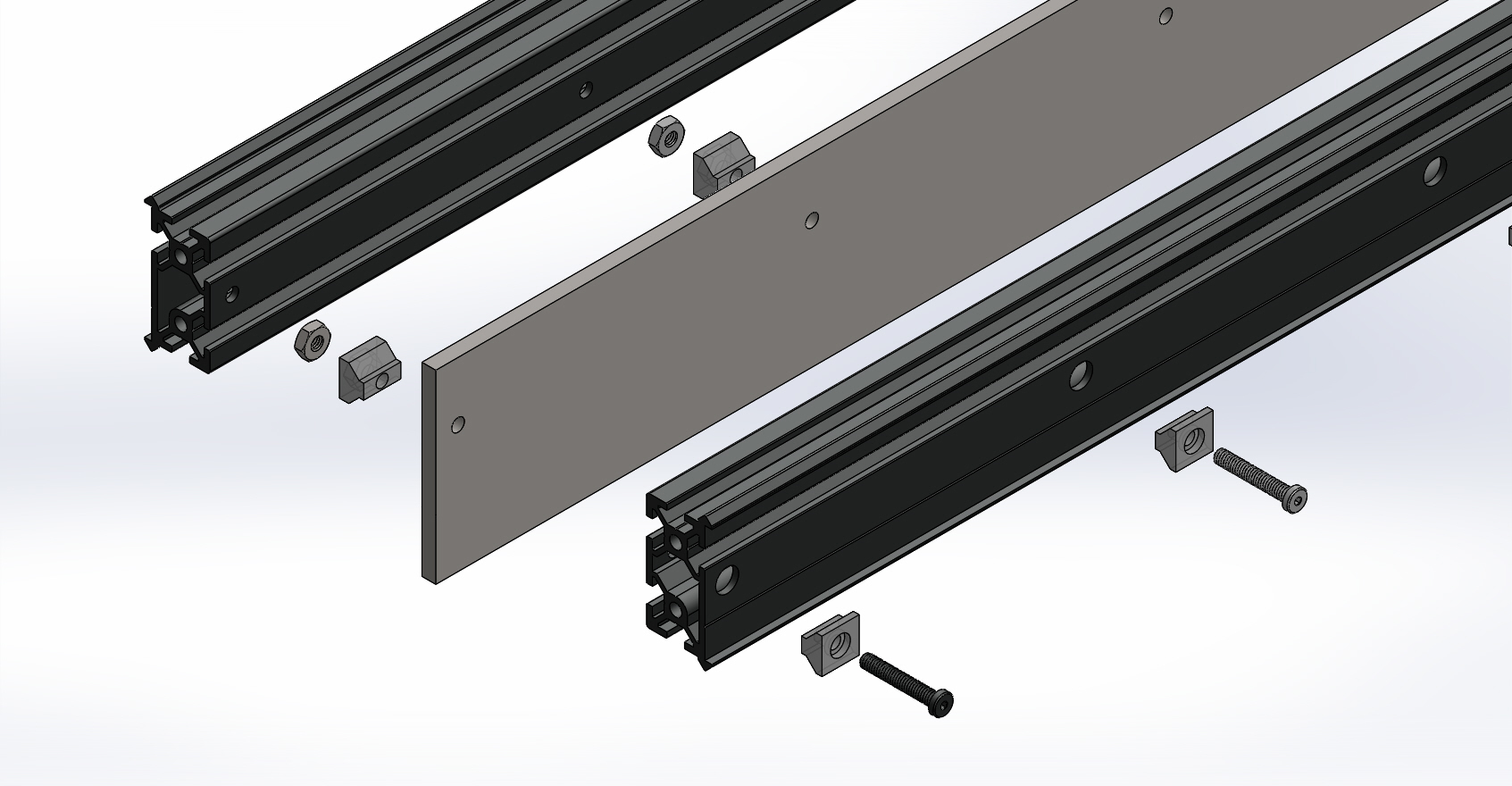 From the pictures above, it looks like you could do both. Horizontal connecting bolts/nuts through the middleālike the steel plate⦠and then tee nuts/M5 bolts in strategic locations in the bottom slots. I canāt imagine that the X axis would have any flex at allāin any direction.