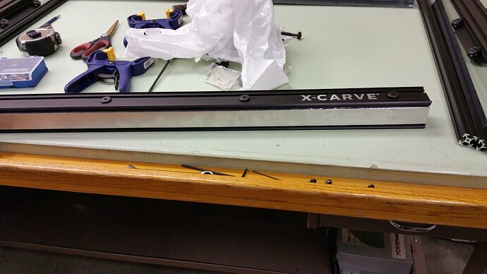 As a side note… there was an issue with an uneven spot on the “V” edge of the makerslide with the “X-CARVE” decal and it had to be replaced so the V wheels would roll smoothly. The pic without the decal is the final assembly with the new makerslide.