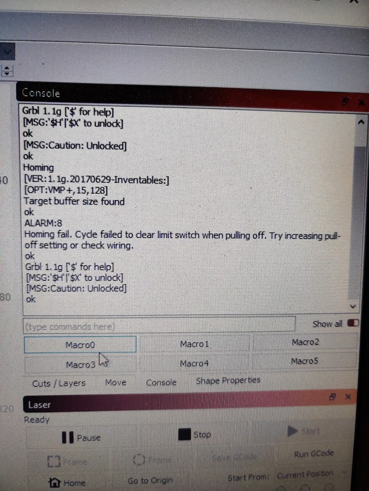 latest time a put on the x-controller, i was just in time to take of the magnetic laserbracket and push the emergencystopbottom. There was only 5mm left or the spindel had touched the table. It was clear that he again went to the wrong side, down instead of up where the switch can stop him.